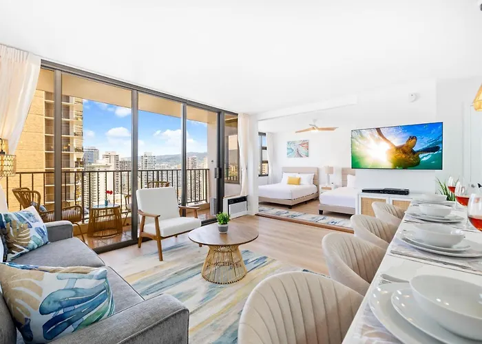 56m²のアパートはデューク・カハナモク・ラグーンから2.4km離れた所で、シャングリラから3.3km離れた所の場所にあります。 ノースショアはGorgeous Condo With Ocean View, Near Beach, Free Parkingから自動車で約10分です。